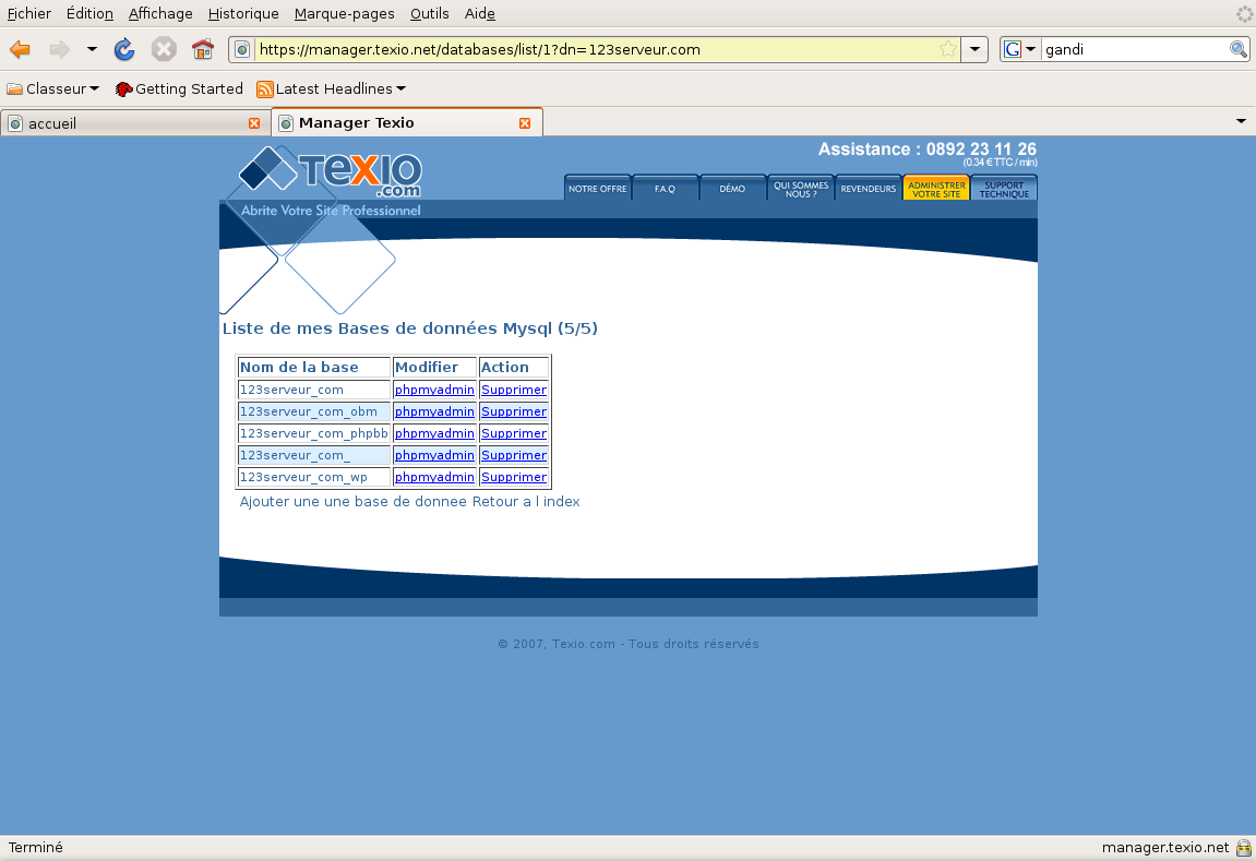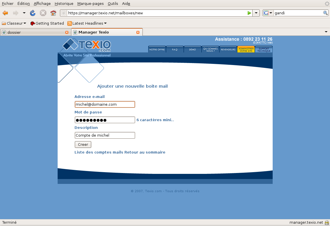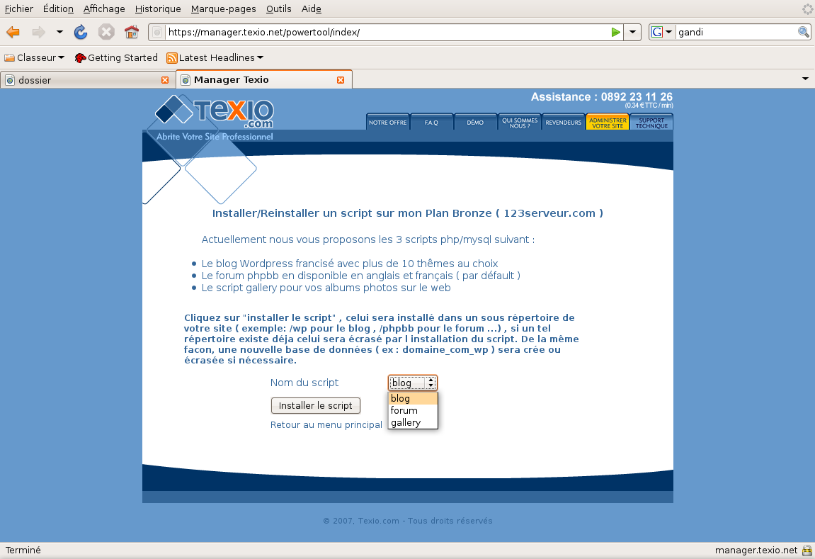 Si vous êtiez déja client avant le 26 septembre 2007, vous pouvez administrer votre compte sur les serveurs de l ancienne plateforme TexioV1 (voir ci dessous) ou contacter le support technique et demander la migration de votre compte sur la nouvelle plateforme.