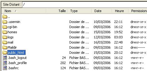 Cliquez maintenant sur le bouton "Connexion Rapide" et FileZilla doit se connecter sur votre site FTP. Si par malheur, un message d'erreur apparaît dans une boite de dialogue, vérifiez le nom du serveur, l'identifiant, et le mot de passe que vous avez saisi. Une fois que vous vous êtes correctement connecté à votre serveur, vous allez voir l'arborescence des répertoires présents sur votre serveur virtuel dans la fenêtre de droite.